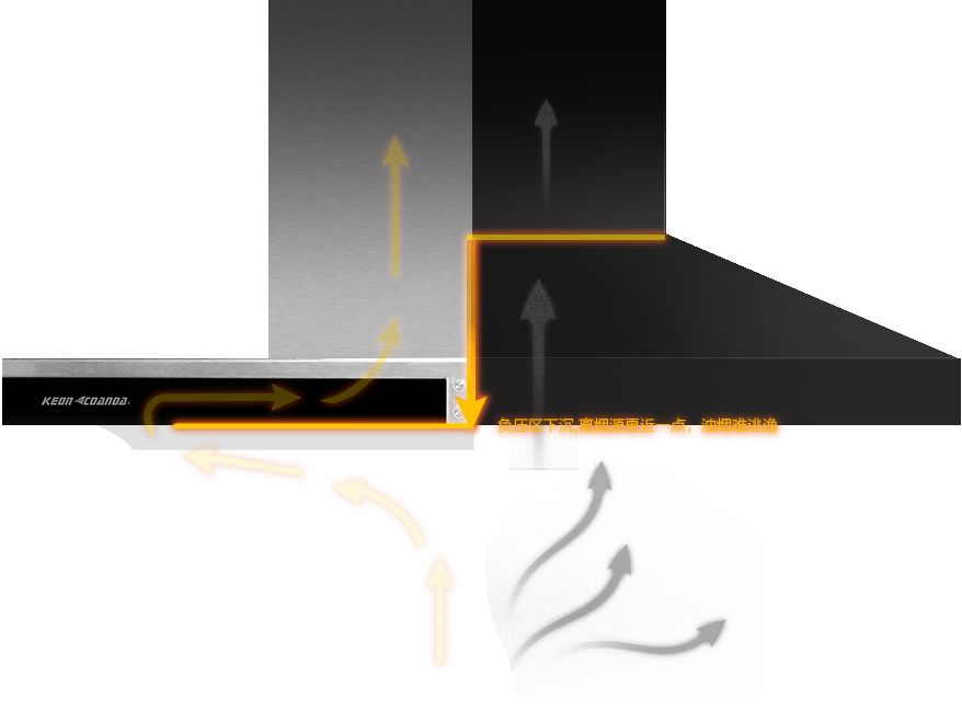 油煙進風從中央變?yōu)樗闹?,擴大攏煙面積