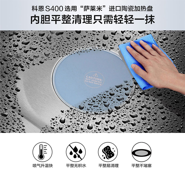 作為行業(yè)翹楚,集成灶十大品牌、廚電行業(yè)十大品牌科恩集成灶深耕行業(yè)數(shù)年,憑借對廚房痛點的敏銳度與洞察力,潛心鉆研新品及新技術(shù),其中近期發(fā)布的科恩S400智能蒸烤消一體集成灶更是極大的滿足了市場的需求。在“蒸”方面,S400集成灶擁有了不起的“蒸”功夫,從物理角度講,100℃的水蒸氣比100℃的開水溫度更高。而130℃的水蒸氣比100℃的肯定具有更多的能量。想要蒸出可口美味的菜,蒸箱就需要滿足“溫度高、蒸汽足”的條件,傳統(tǒng)蒸箱最高溫度只能達到100℃,很難蒸出理想效果。集成灶十大品牌、廚電行業(yè)十大品牌科恩S400智能蒸烤消一體集成灶采用噴氣式4D立體蒸技術(shù),底部陶瓷加熱盤加右側(cè)雙孔蒸汽噴射,蒸汽自外向內(nèi),將食物層層包裹,熱蒸合力,全方位滲透食材,短時間內(nèi)食物即可快速熟透、酥糯。另外,S400集成灶還擁有頂部微晶玻璃體發(fā)熱,頂部不滴水,杜絕冷凝水,清潔更輕松。