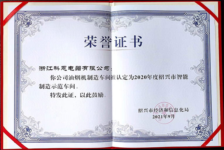 進一步強化標(biāo)桿示范引領(lǐng),全面提升企業(yè)“新智造”水平,2020年度紹興市傳統(tǒng)產(chǎn)業(yè)智能化改造項目申報和評審認(rèn)定工作開展,經(jīng)企業(yè)申報、各地初審、資料審閱、現(xiàn)場踏勘等環(huán)節(jié),浙江科恩電器有限公司油煙機車間榮獲“2020年度紹興市智能制造示范車間”。