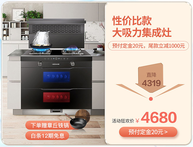 科恩集成灶雙11爆款搶免單,新一代變頻蒸烤消一體集成灶,八大烹飪模式蒸烤合一,集成灶選變頻,更省心!D151X變頻大吸力蒸烤消一體集成灶雙11狂歡價(jià)8760元,11月10日20點(diǎn)前5臺(tái)下單就有機(jī)會(huì)免單;