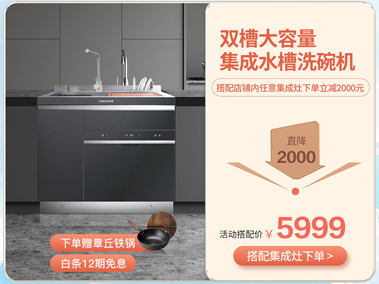 雙11搭配購實(shí)惠,集成水槽洗碗機(jī),清洗、保潔、收納、存放四合一,給您不一樣的廚房樂趣,科恩KN0A3集成水槽洗碗機(jī)雙11直降2000,活動(dòng)搭配價(jià)僅需5999;