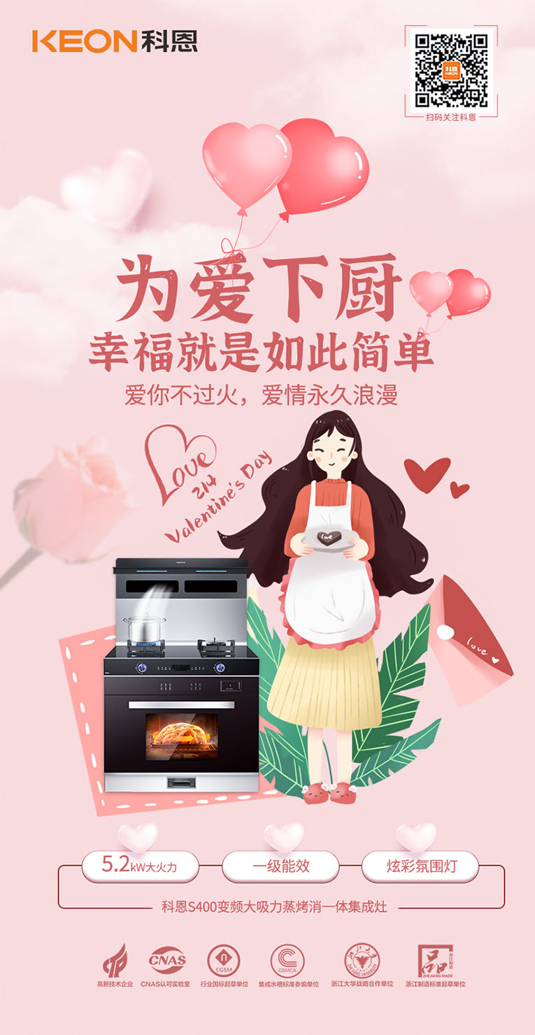 浪漫的情人節(jié),給心愛的她一個小驚喜小浪漫,能想到最浪漫的事,就是和你一起慢慢變老,一起做很多頓飯~用人間煙火,治愈一身疲憊,一起吃飯是家庭生活最重要的儀式感。集成灶十大品牌、廚電行業(yè)十大品牌科恩S400變頻大吸力蒸烤消一體集成灶,蒸烤同步美味加倍,把更多美好時光留于家人,不必再囿于廚房,也能收獲美味與愛,讓你的時間慢下來。