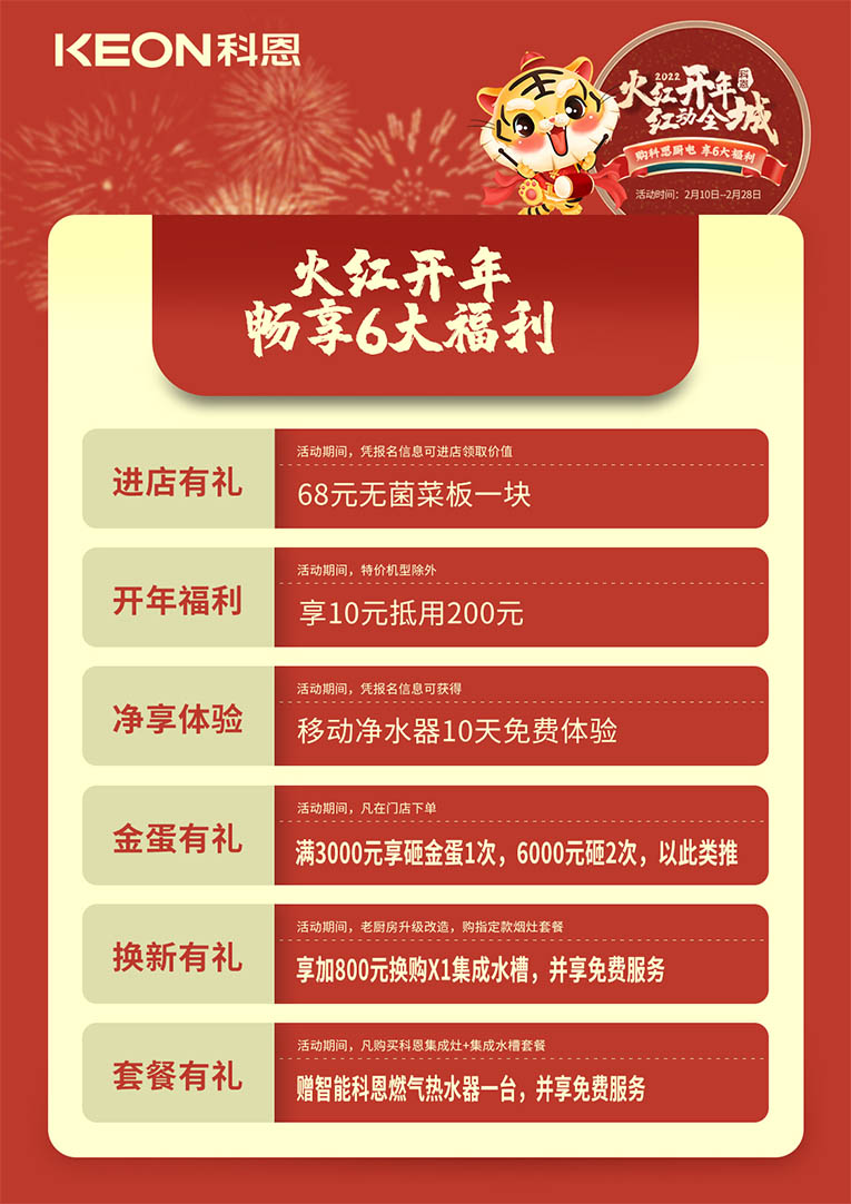 新年新氣象,新舊物品的更迭,不僅是告別過去的一年,更是蘊藏對新一年的憧憬~新的一年,集成灶十大品牌、廚電行業(yè)十大品牌科恩集成灶“火紅開年,紅動全城”活動,加持您的新氣象,“灶”就虎虎生威的2022!