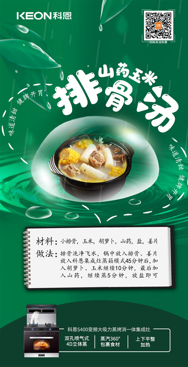 中醫(yī)認(rèn)為肝主生發(fā),故春季肝氣旺盛,肝木易克脾土,養(yǎng)生不當(dāng)容易損傷脾臟,從而導(dǎo)致脾胃功能的下降。雨水時(shí)節(jié)空氣濕潤(rùn),又不燥熱,正是養(yǎng)生的好時(shí)機(jī),當(dāng)然首先要調(diào)養(yǎng)脾胃。集成灶十大品牌、廚電行業(yè)十大品牌科恩集成灶多項(xiàng)全能,蒸煮、煲湯、煎炸、爆炒樣樣精通,輕松應(yīng)對(duì)您所需的烹飪方式,20m3/min大風(fēng)量,720Pa大風(fēng)壓,只留美味,不留油煙。