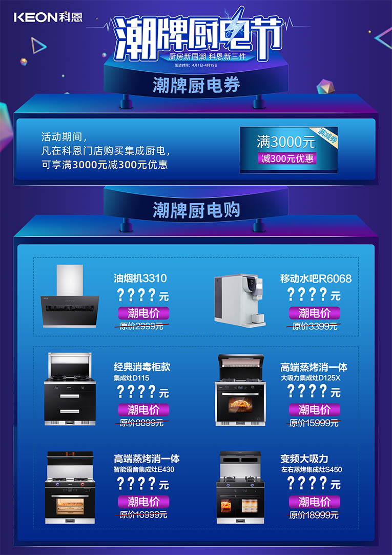 除此之外,更有科恩全國六大戰(zhàn)區(qū)同時發(fā)力,只為給全國用戶帶來瘋狂特惠?。?月1日——4月15日,進科恩門店,潮牌廚電節(jié),更多驚喜等你揭秘~