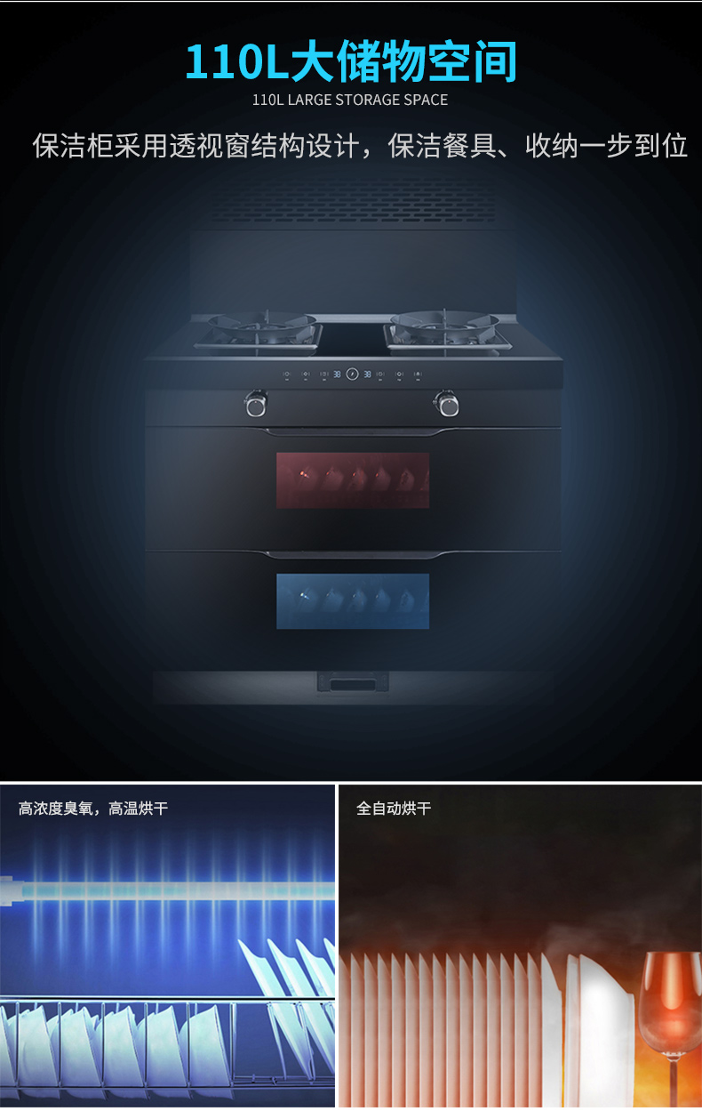 110L大儲物空間,輕松滿足5-8口之家日常所需,恒溫烘干,久存無異味,餐具干爽即去即用,消毒、收納一步到位。
