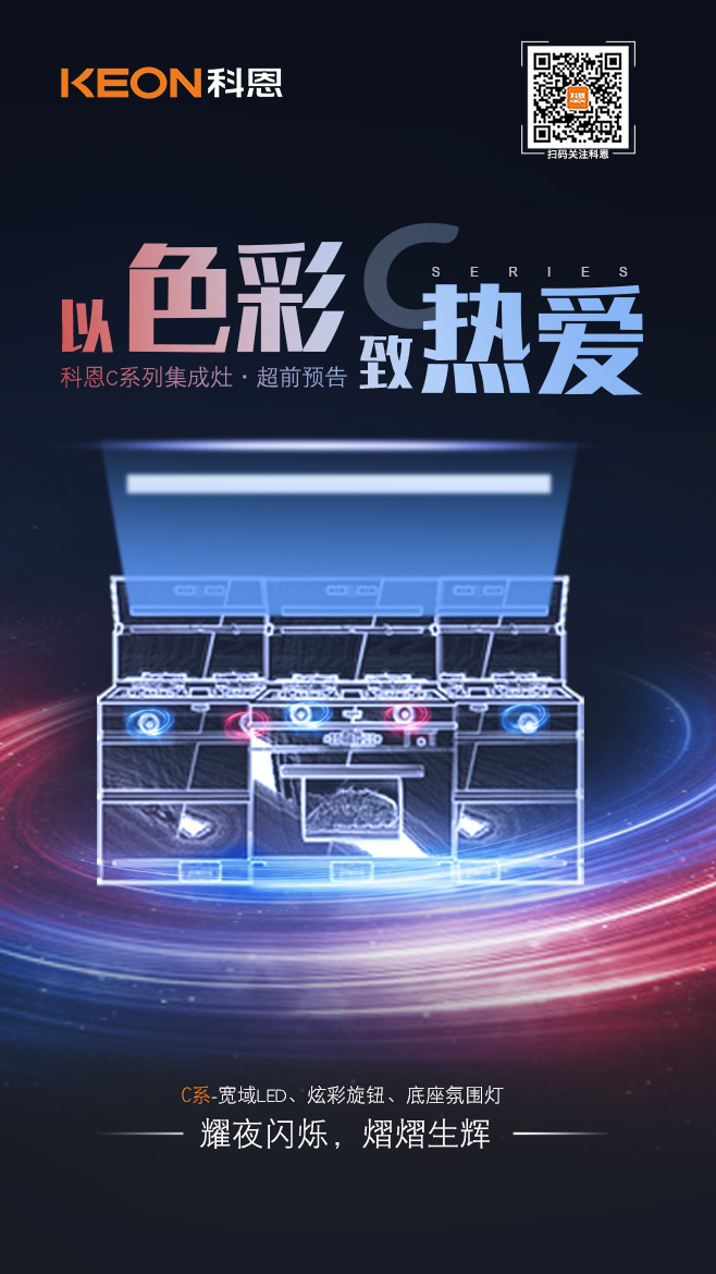 一眼,鮮明,再睹,目不轉睛,科恩C系集成灶,打破常規(guī)邊界,同向而行以色彩致熱愛,將無限溫柔與浪漫一并贈予你!