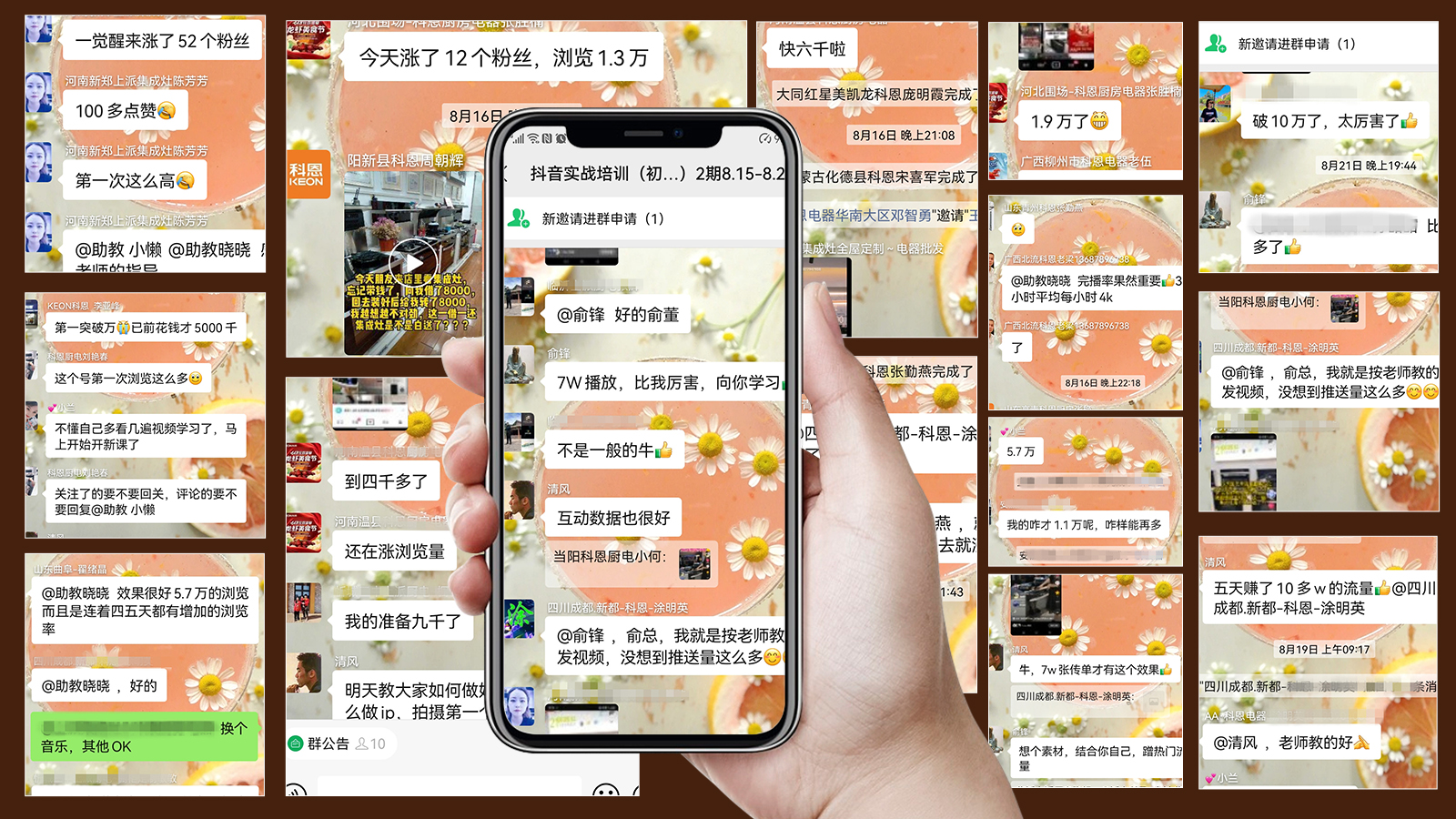 在通過(guò)抖音實(shí)戰(zhàn)強(qiáng)化培訓(xùn)之后,大家都收獲滿滿,要求總部能提供更高、更專業(yè)的抖音技能,為此,科恩總部特開設(shè)抖音21天陪跑計(jì)劃高級(jí)班!