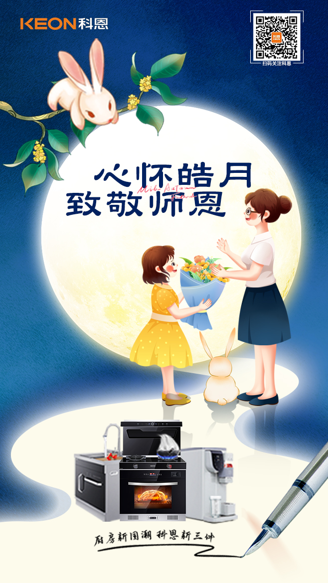 2022年9月10日,是闔家團(tuán)圓的季節(jié),也是致敬師恩的季節(jié),中秋節(jié)與教師節(jié)不期而遇,讓中秋節(jié)更加高雅知性,讓教師節(jié)富有儀式感,明月如燈,師恩似海,豈止感恩,共祝團(tuán)圓,雙節(jié)將至,科恩集成灶,祝愿大家花常好,月常圓,人常在!
