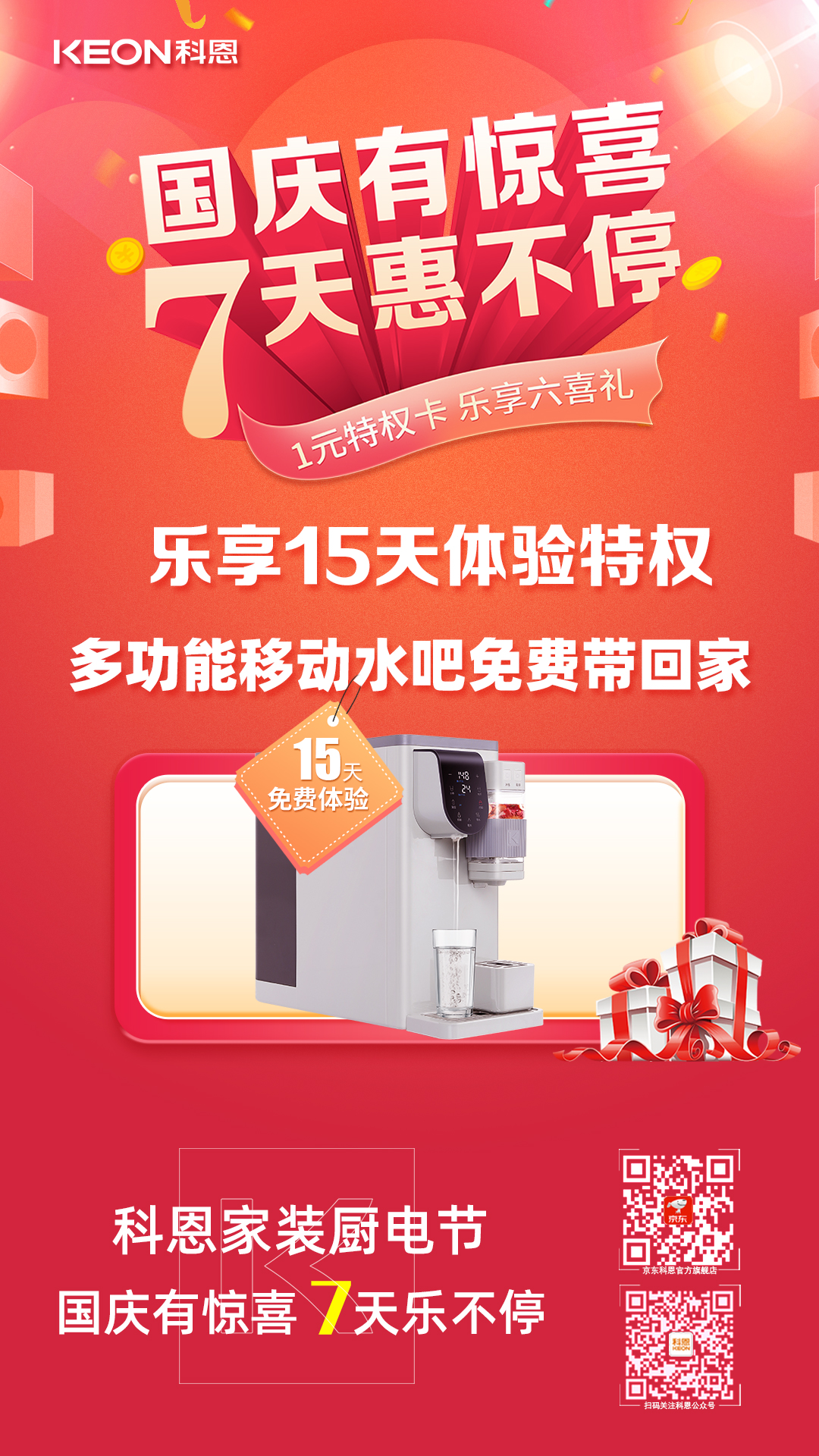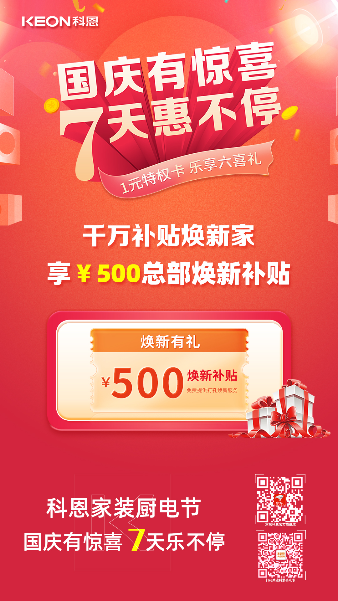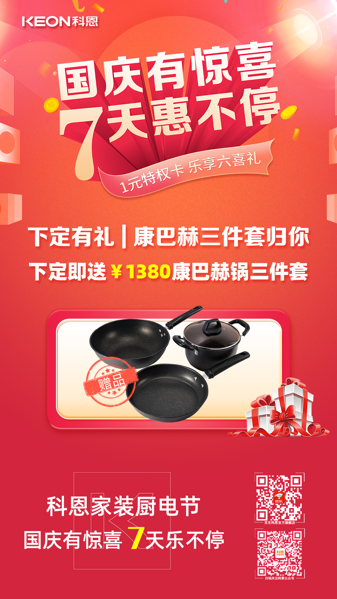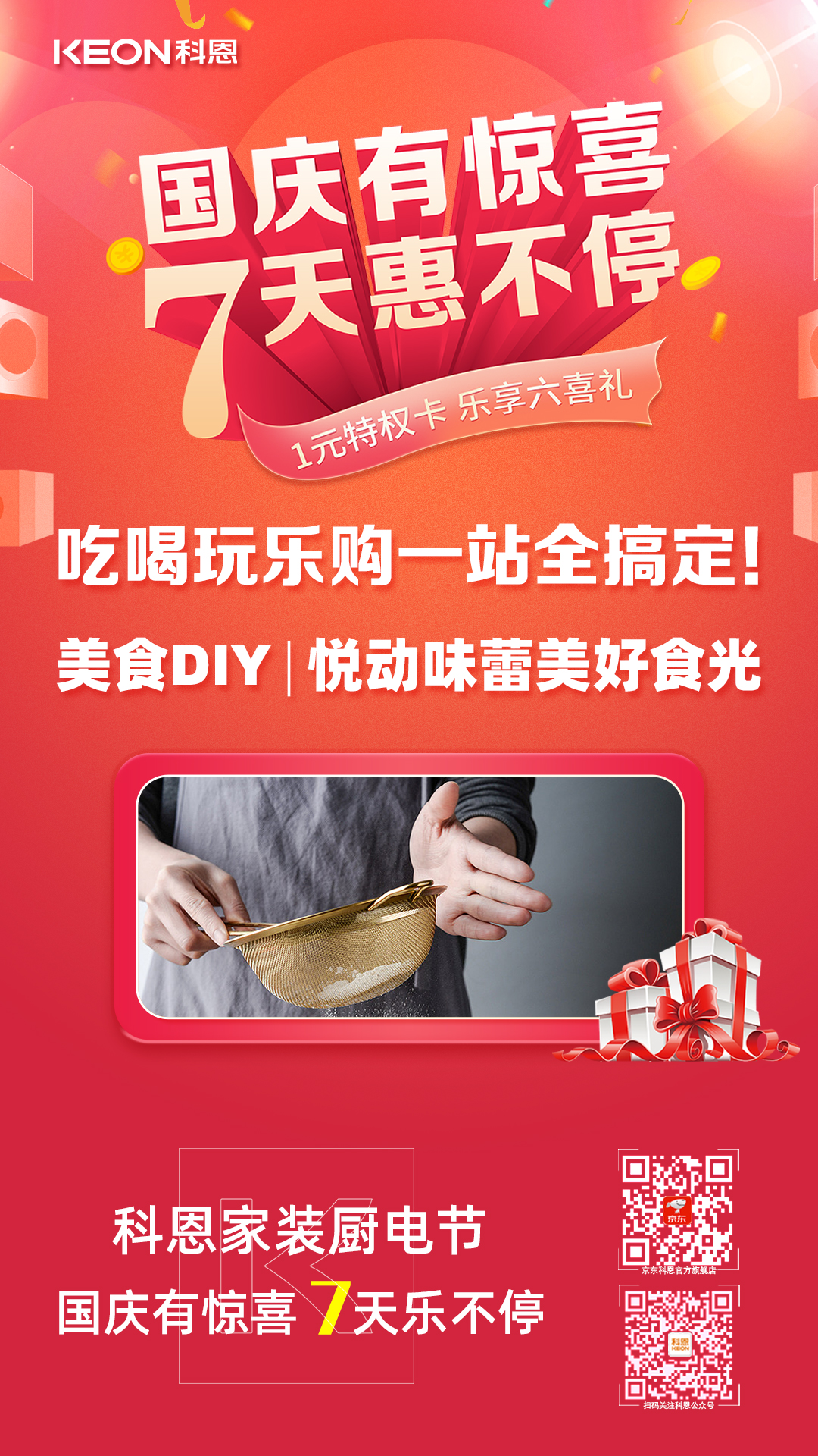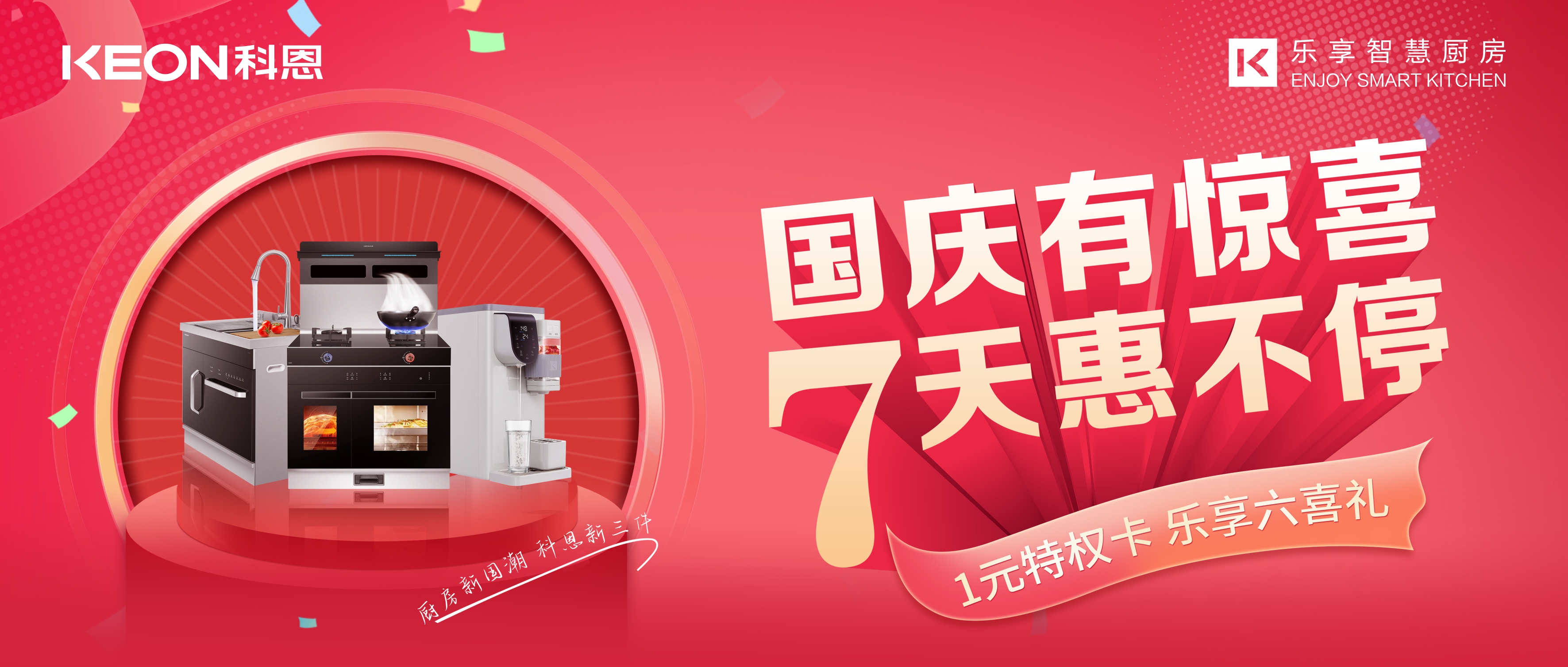 國(guó)慶價(jià)·提前享,科恩家裝廚電節(jié)之國(guó)慶專輯——國(guó)慶有驚喜,7天惠不停,科恩集成灶帶你嗨購(gòu)黃金周!