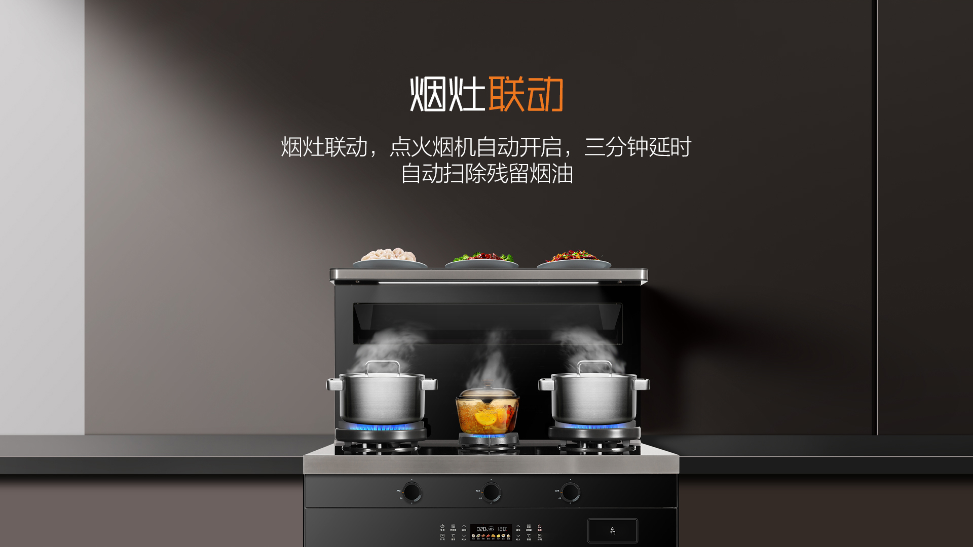 與普通煙灶聯(lián)動(dòng)不同,A3系列打開灶具的同時(shí)煙機(jī)與照明燈同時(shí)打開,且煙機(jī)可根據(jù)火力大小自動(dòng)調(diào)節(jié),無需再手動(dòng)調(diào)節(jié),風(fēng)隨火動(dòng)廚房更智能。