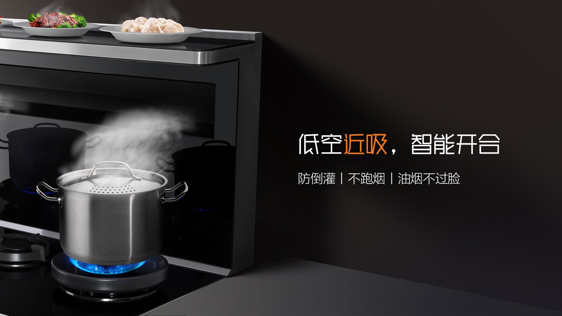 特有的內(nèi)傾科恩達(dá)導(dǎo)煙網(wǎng)板不遮擋視線,且形成獨(dú)特的吸煙黃金角,讓油煙在鍋口就被吸走,0跑煙,廚房更清新!