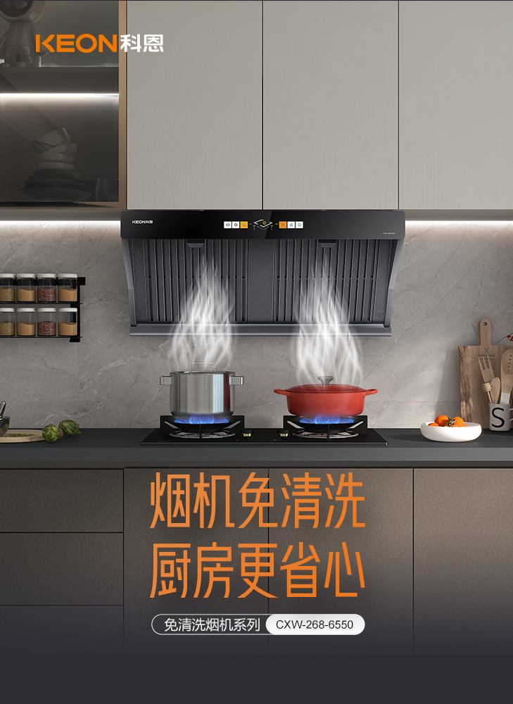 科恩6530免清洗煙機(jī)的面世,給無數(shù)用戶帶去了全新的廚房生活理念。不用清洗的油煙機(jī),讓人們真正體驗到了便利的廚房生活。也因此6530可謂是火爆全網(wǎng),暢銷全國!科恩隨即研發(fā)了6530姊妹款6550!