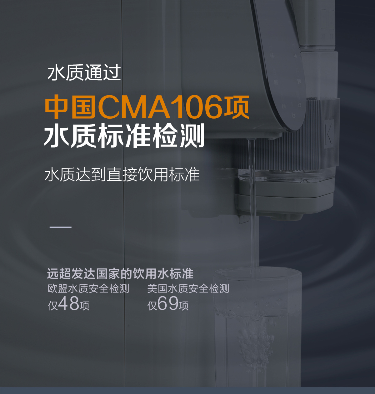 科恩R6068移動水吧,采用RO四膜七級精濾技術(shù),搭載UV抑菌功能,水質(zhì)通過中國CMA106項水質(zhì)標準檢測,遠超發(fā)達國家的飲用水標準(歐盟水質(zhì)安全檢測僅48項、美國水質(zhì)安全檢測僅69項)。