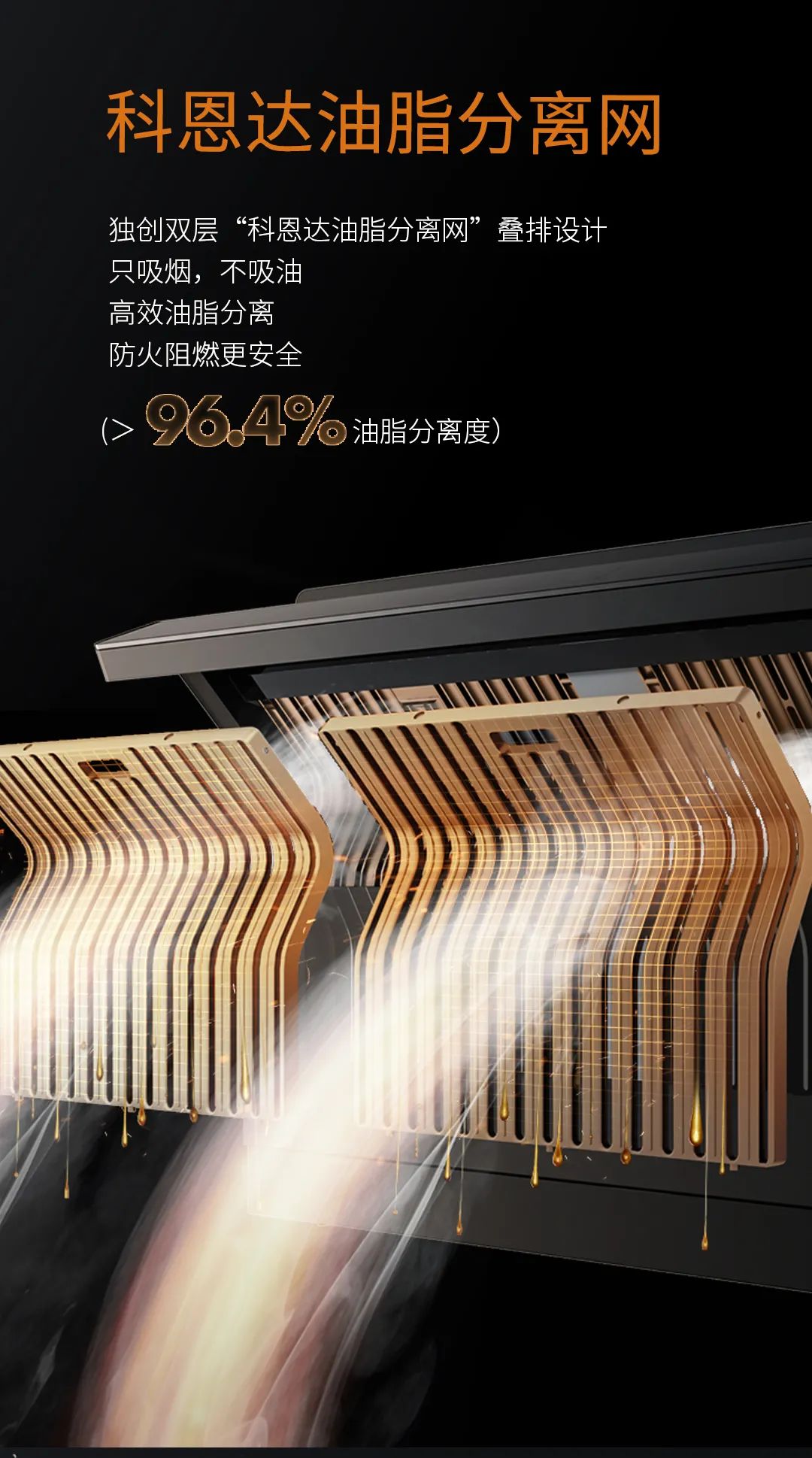 6K省心超體驗二:科學(xué)設(shè)計免清洗,耐用省心!科恩達油脂分離網(wǎng)完美實現(xiàn)煙機免清洗??贫鬟_油脂分離網(wǎng)可實現(xiàn)高效油脂分離,油脂分離率>96%,實現(xiàn)油脂不進門,煙機免清洗的理想狀態(tài)。