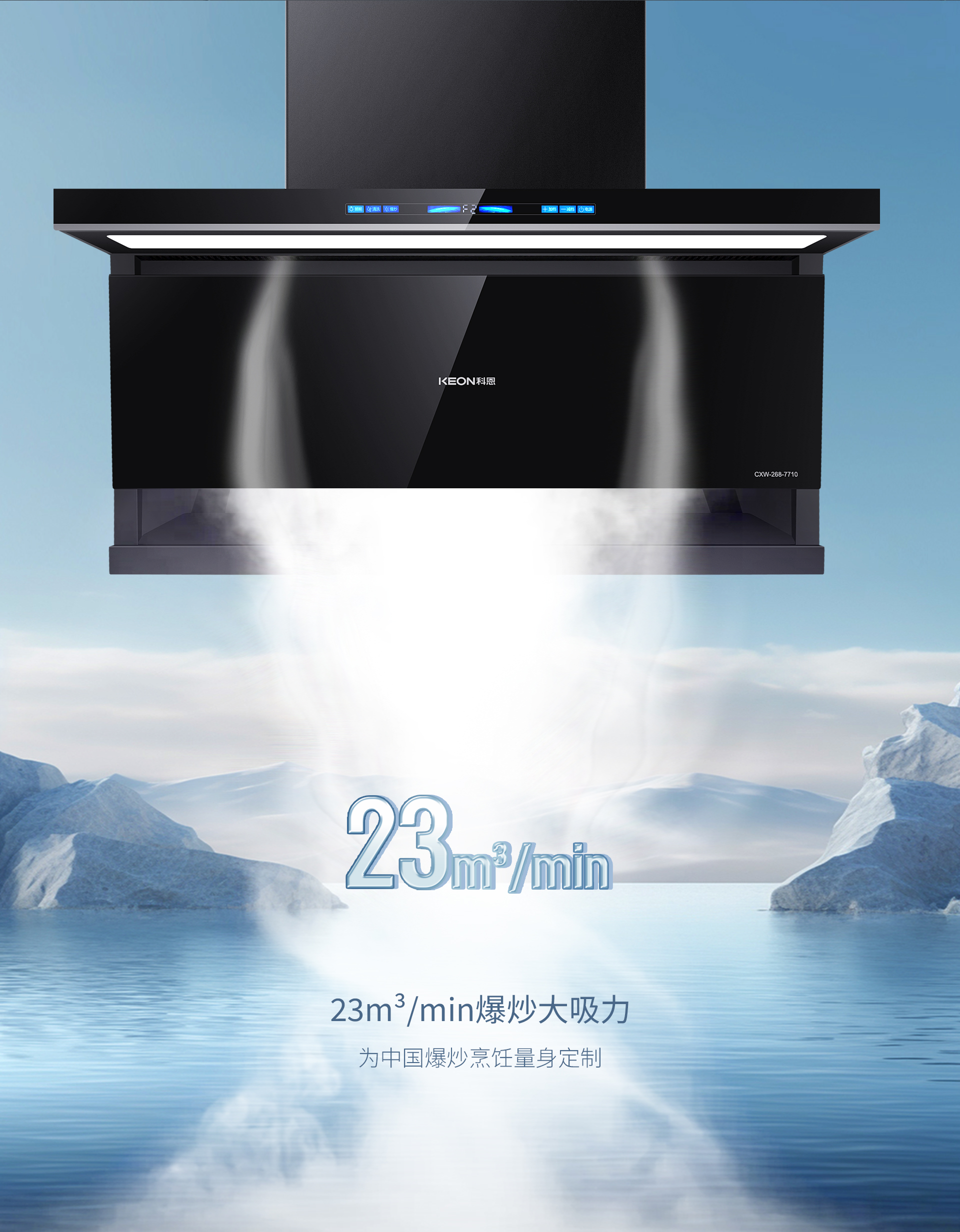 面對(duì)中式烹飪中常見的重油爆炒,它也能從容應(yīng)對(duì),23m³/min的強(qiáng)勁吸力如颶風(fēng)過(guò)境,瞬間將油煙吸凈,還廚房一片清新。