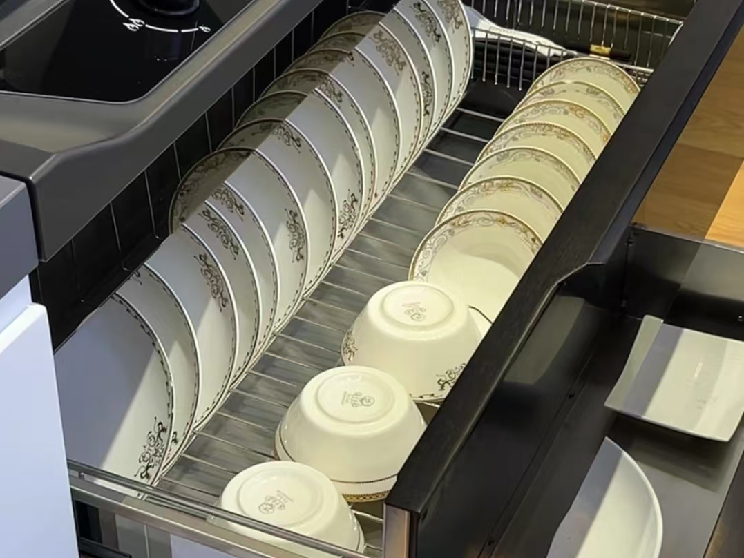 當(dāng)普通消毒柜還在玩高溫殺菌時,P10已實現(xiàn)臭氧+紫外線+遠(yuǎn)紅外的三維打擊可消滅大腸桿菌、幽門螺桿菌等99.99%病菌,母嬰用品也可安心用。消毒時自動開啟屏鎖,電路配備過載保護,守護全家人的健康安全。更貼心的是熱風(fēng)烘干功能,告別梅雨季餐具發(fā)霉煩惱。185L超大容量雙抽設(shè)計,可容納40+碗盤、30+筷子勺叉及杯具,朋友聚餐時再也不用上演“鍋碗瓢盆大逃亡”。碗筷分區(qū)存放,避免餐具交叉污染,守護每一餐安心。