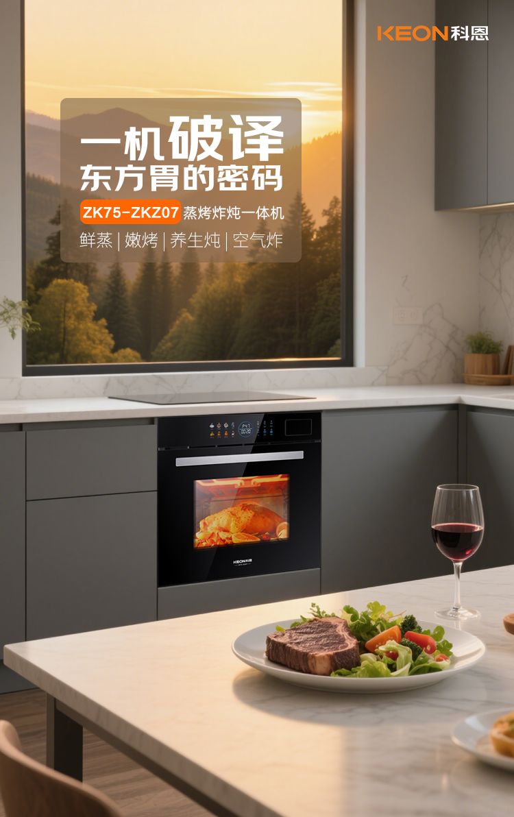 夏意漸濃,煙火煥新。科恩全新打造蒸烤炸燉一體機ZKZ07,以科技之力,一機破解東方胃的密碼,讓蒸汽縈繞、脆香迸發(fā)、炙烤生香,重構(gòu)一方煙火里的味覺宇宙!