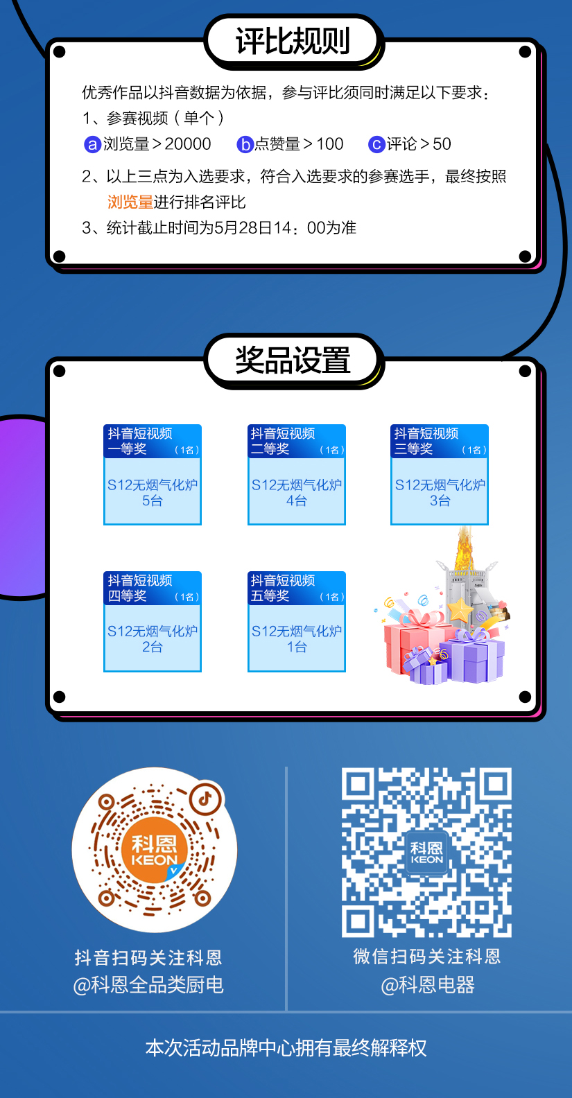 江湖風(fēng)云起,爐火論英雄??焓詹剡@份規(guī)則秘籍。福利升級(jí),獎(jiǎng)品豐厚,煥新好禮帶回家。廚房江湖,等你來(lái)戰(zhàn)。@科恩全品類(lèi)廚電官方抖音號(hào),帶上話(huà)題 #科恩龍蝦節(jié)#科恩無(wú)煙氣化爐,定位打卡地點(diǎn),即刻點(diǎn)燃爐火,舉起鏡頭,用一場(chǎng)色香味俱全的短視頻盛宴。搶占今夏流量C位!