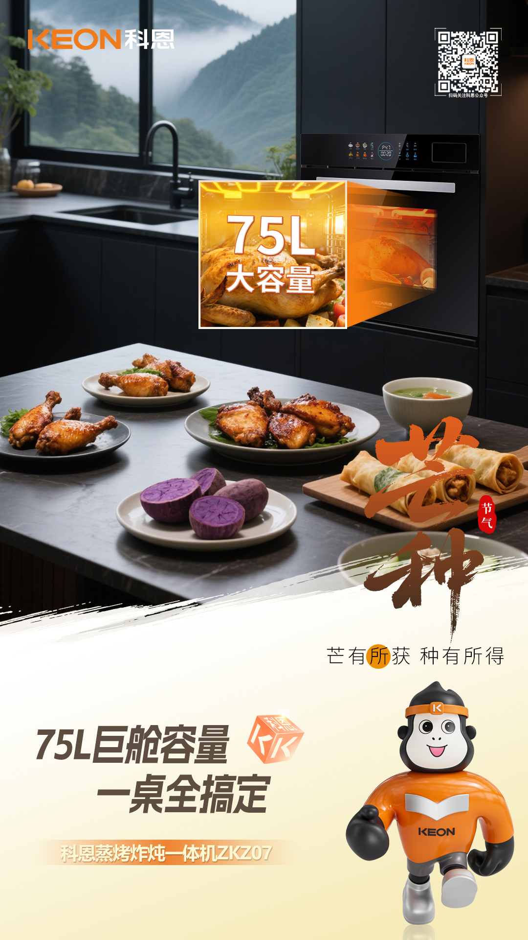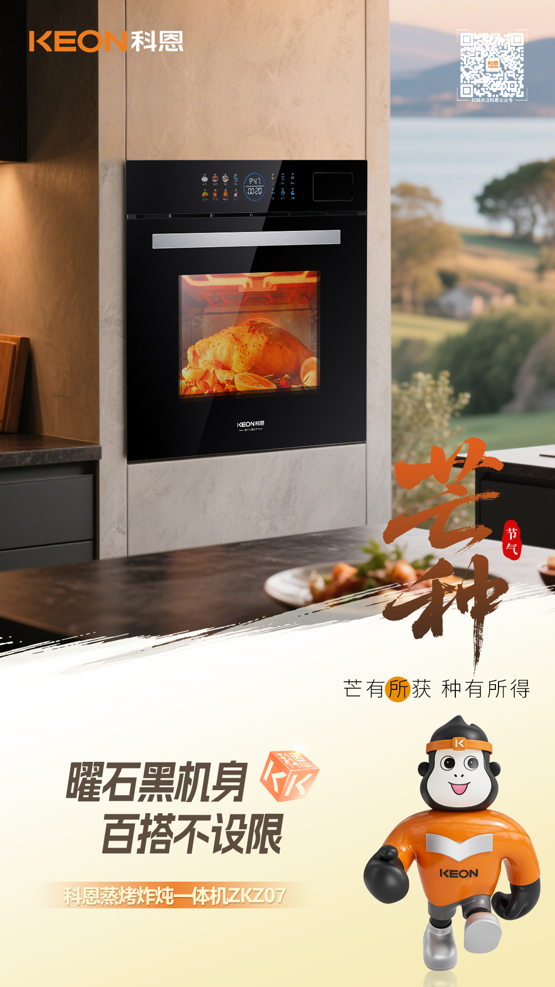 仲夏蟬鳴起,新麥入倉(cāng)時(shí)。芒種麥香濃,廚房煥新章。科恩匠心推出ZKZ07蒸烤炸燉一體機(jī),用科技重新定義烹飪藝術(shù),讓每一道菜都成為時(shí)令佳作,為家人帶來(lái)舌尖上的驚喜!