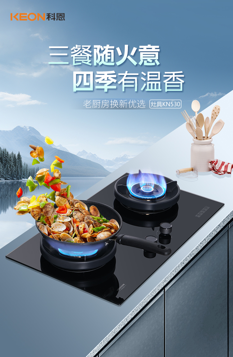 三餐煙火暖,灶間藏日常。老舊灶具總在烹飪時(shí)添堵,火候忽大忽小,炒不出脆嫩鍋氣,油污難擦,旋鈕發(fā)燙,科恩全新推出 KN530 灶具。以匠心設(shè)計(jì)破解廚房痛點(diǎn),從老舊灶臺到全新烹飪空間,只需一次換裝,開啟美味新紀(jì)元。