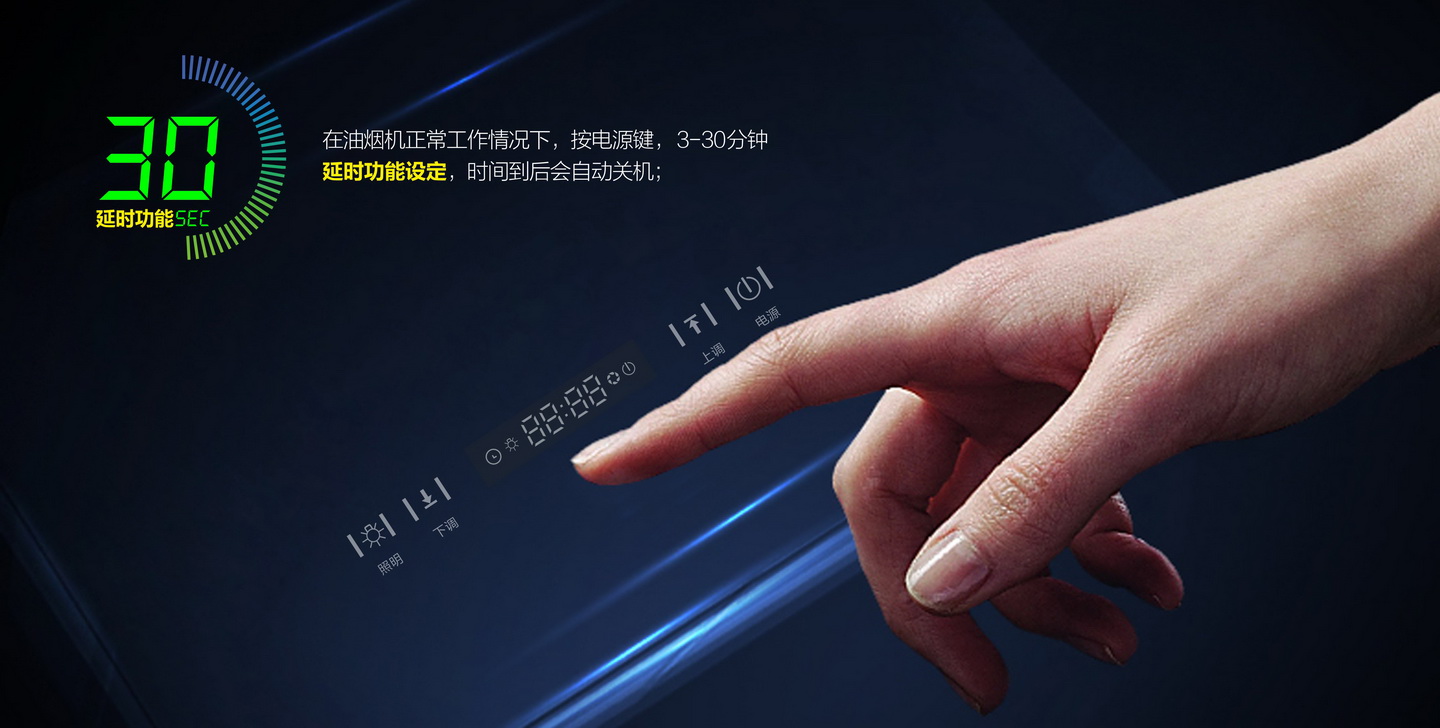 • 在油煙機(jī)正常工作情況下,按電源鍵,時(shí)間到后會(huì)自動(dòng)關(guān)機(jī)。