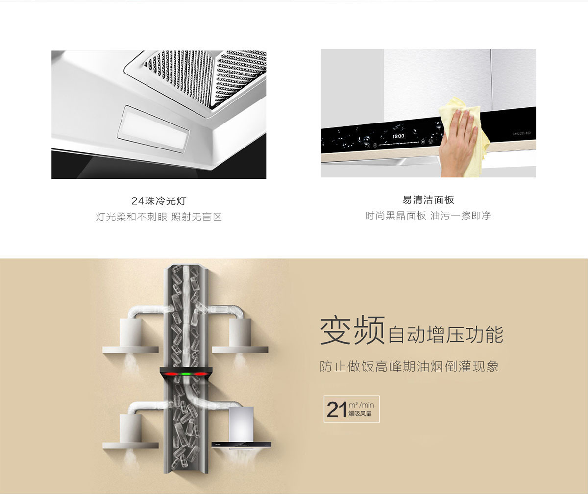 - 變頻自動增壓功能,防止做飯高峰期油煙倒灌現(xiàn)象。