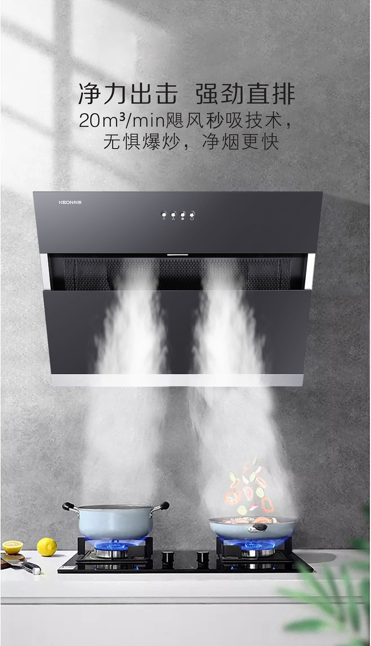 • 凈力出擊,強(qiáng)勁直排,颶風(fēng)爆吸技術(shù),無懼爆炒,凈煙更快。