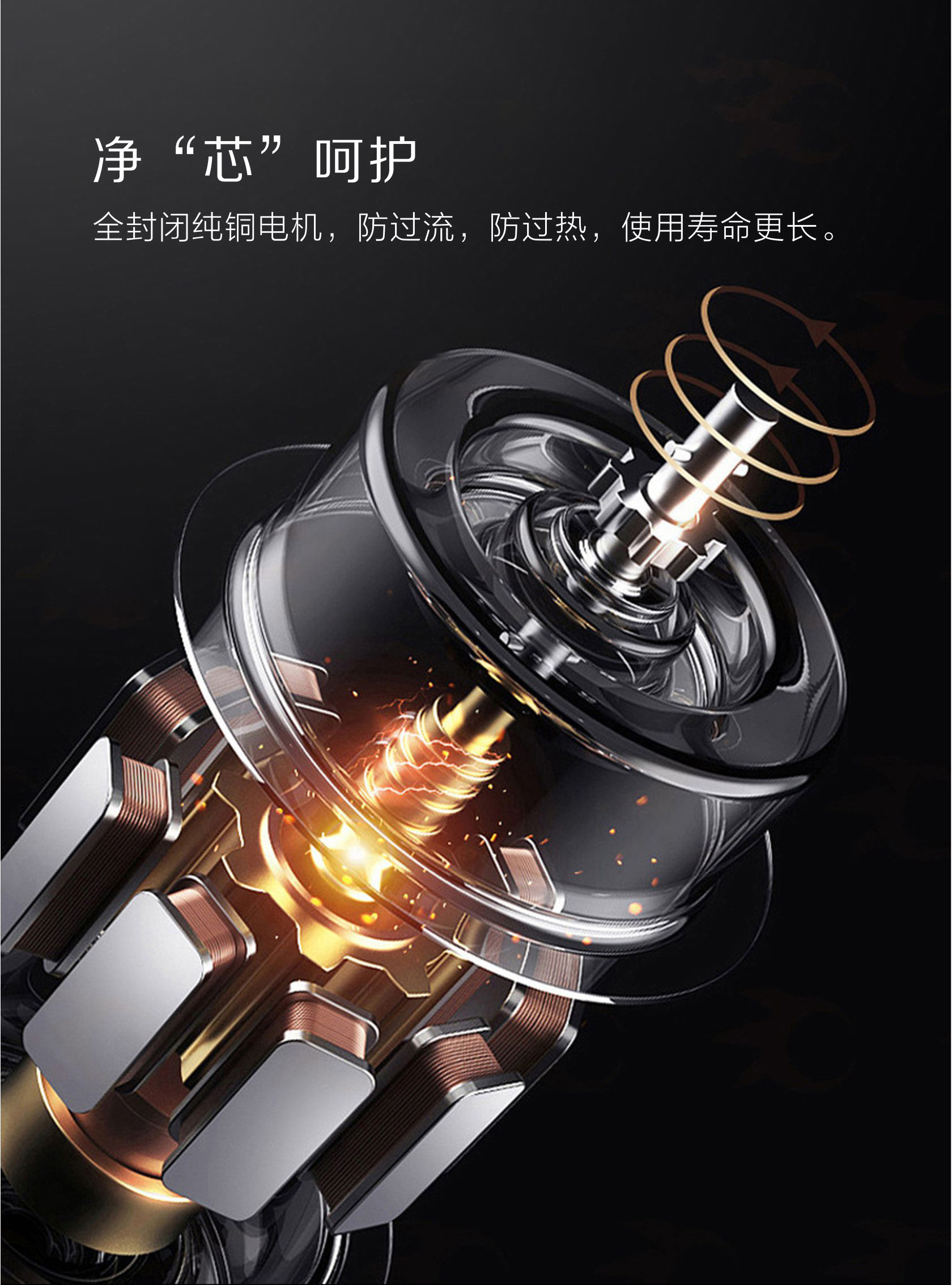 • 凈“芯”呵護(hù),全封閉純銅電機(jī),防過流,防過熱,使用壽命更長(zhǎng)。