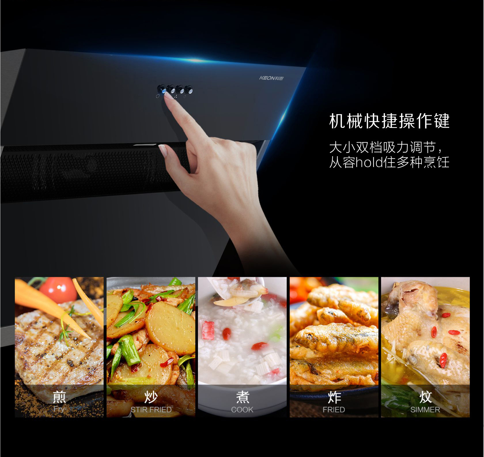 • 機(jī)械快捷操作鍵,大小雙檔吸力調(diào)節(jié),從容hold住多種烹飪。