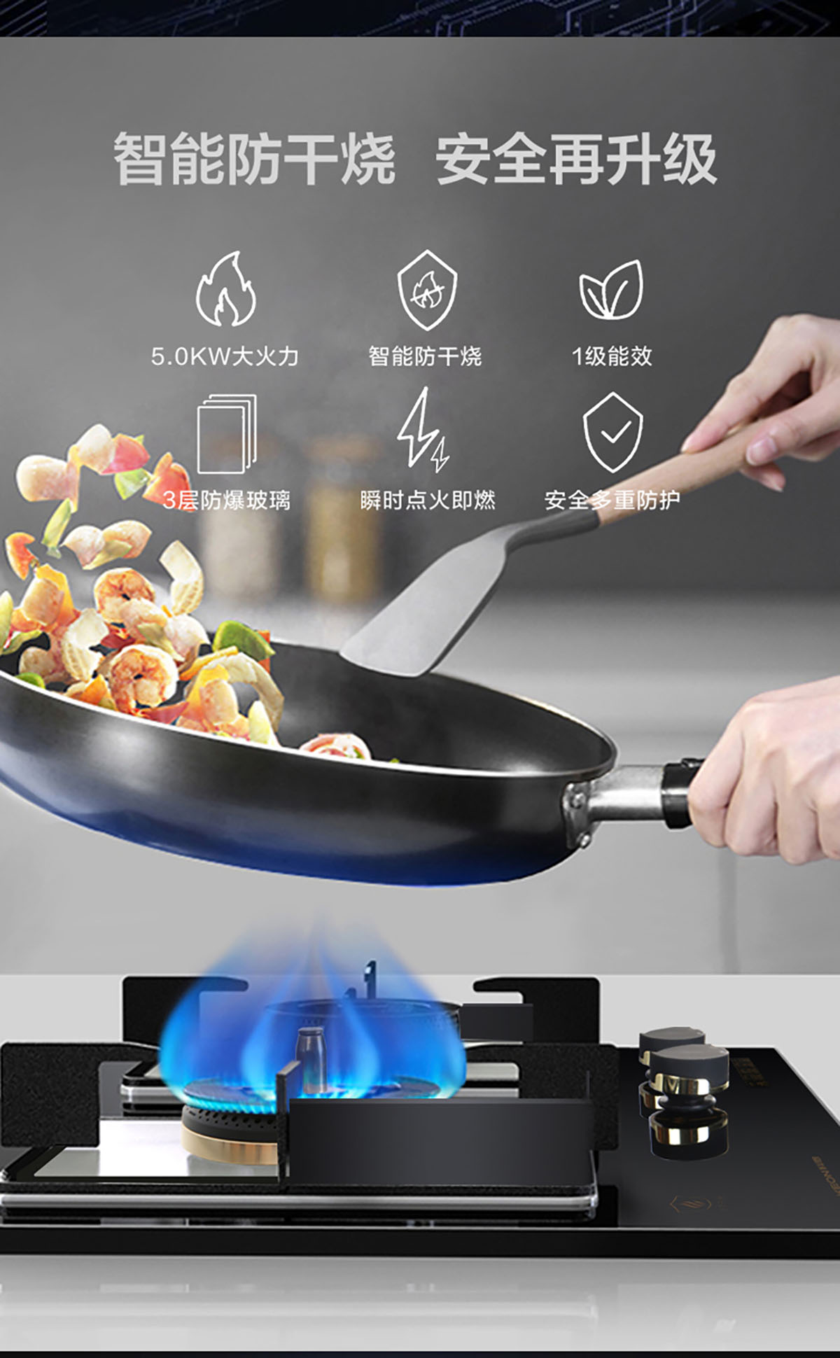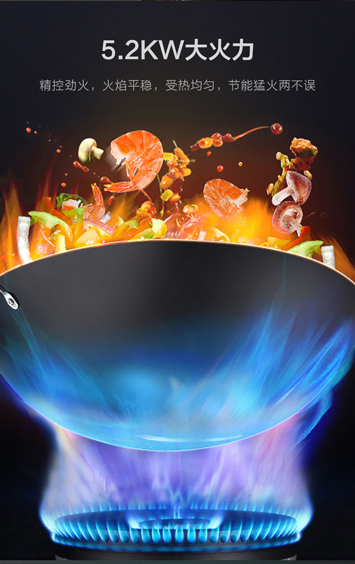 - 5.2KW大火力,精控勁火,受熱均勻,節(jié)能猛火兩不誤