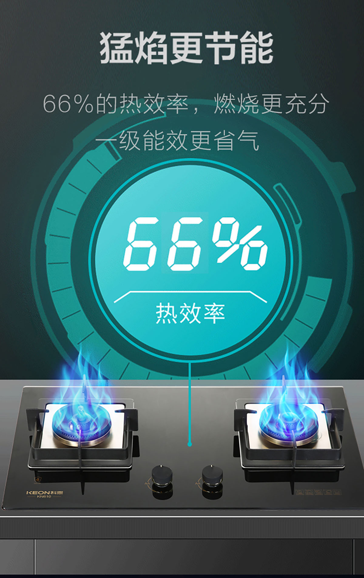 - 猛焰更節(jié)能,66%的熱效率,燃燒更充分,一級能效更省氣