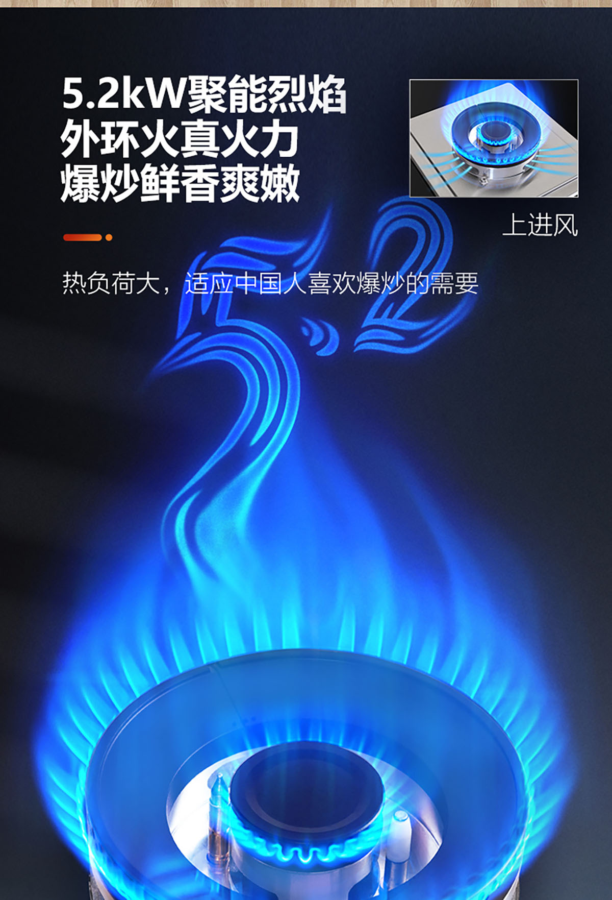 - 熱負(fù)荷大,適應(yīng)中國人喜歡爆炒的需要