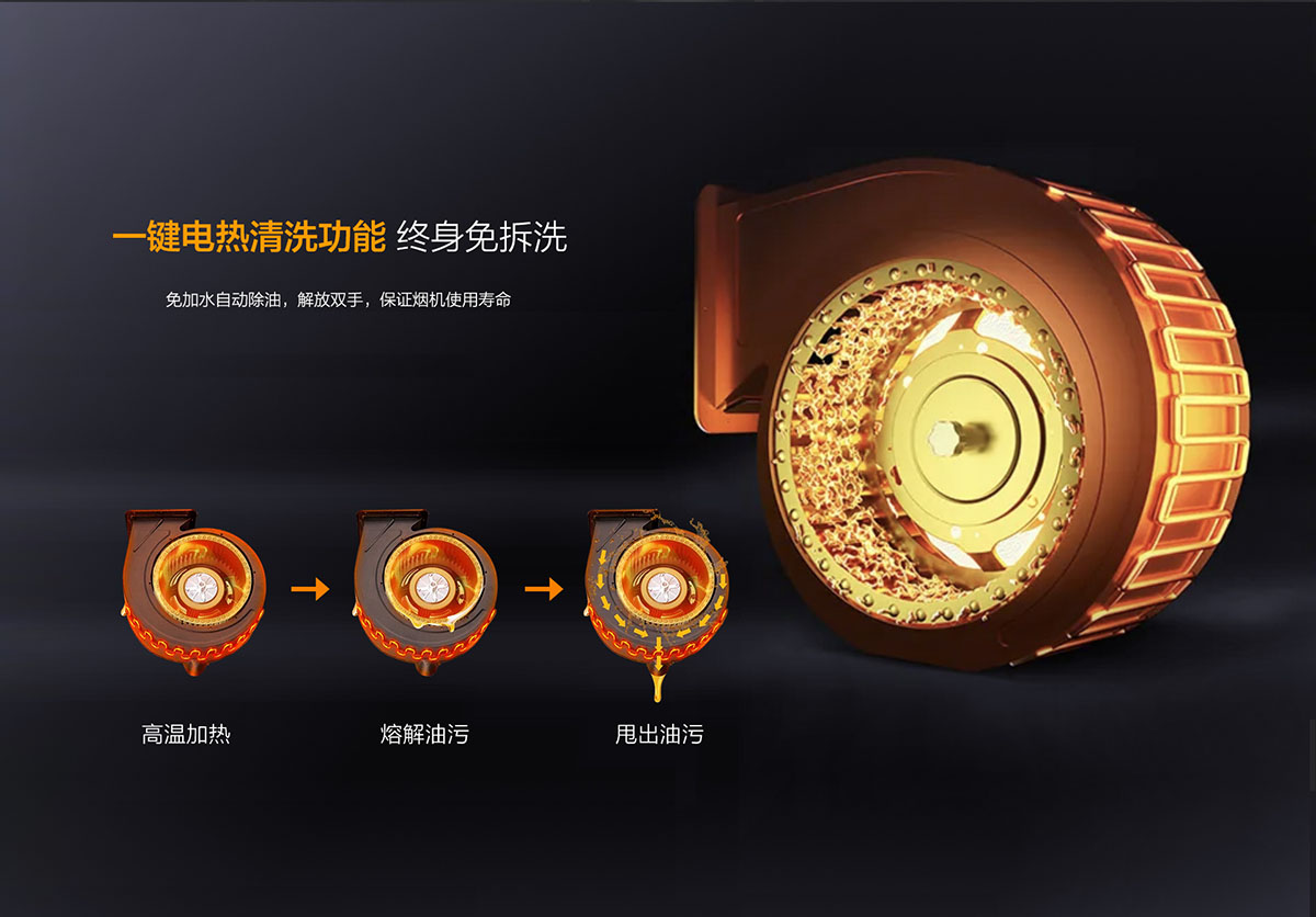 - 一鍵電熱智清洗,終身免拆洗,葉輪風柜壁自動除油,解放雙手
