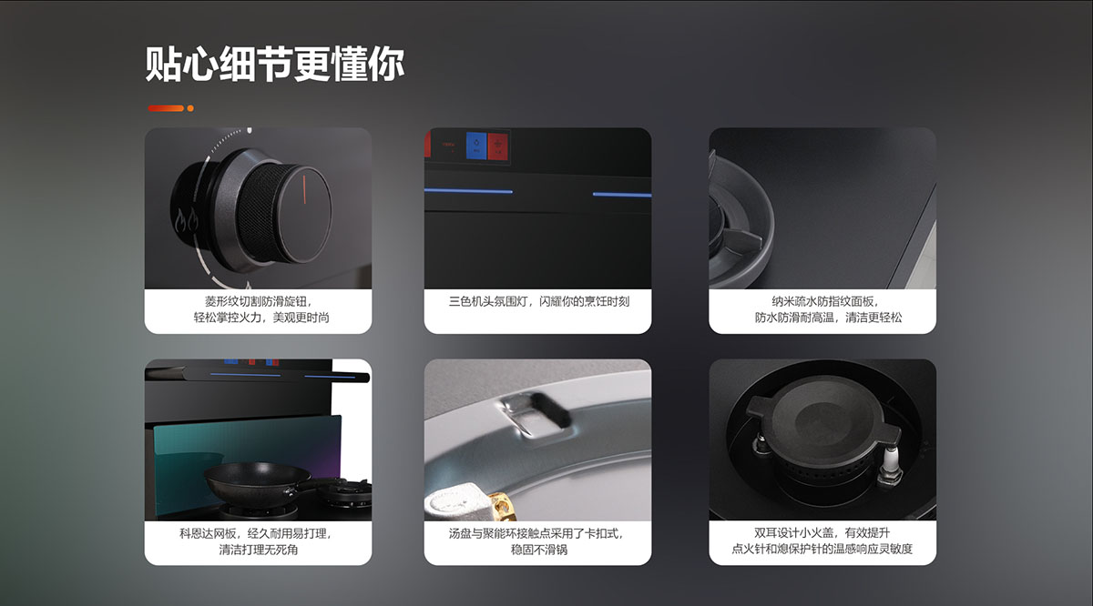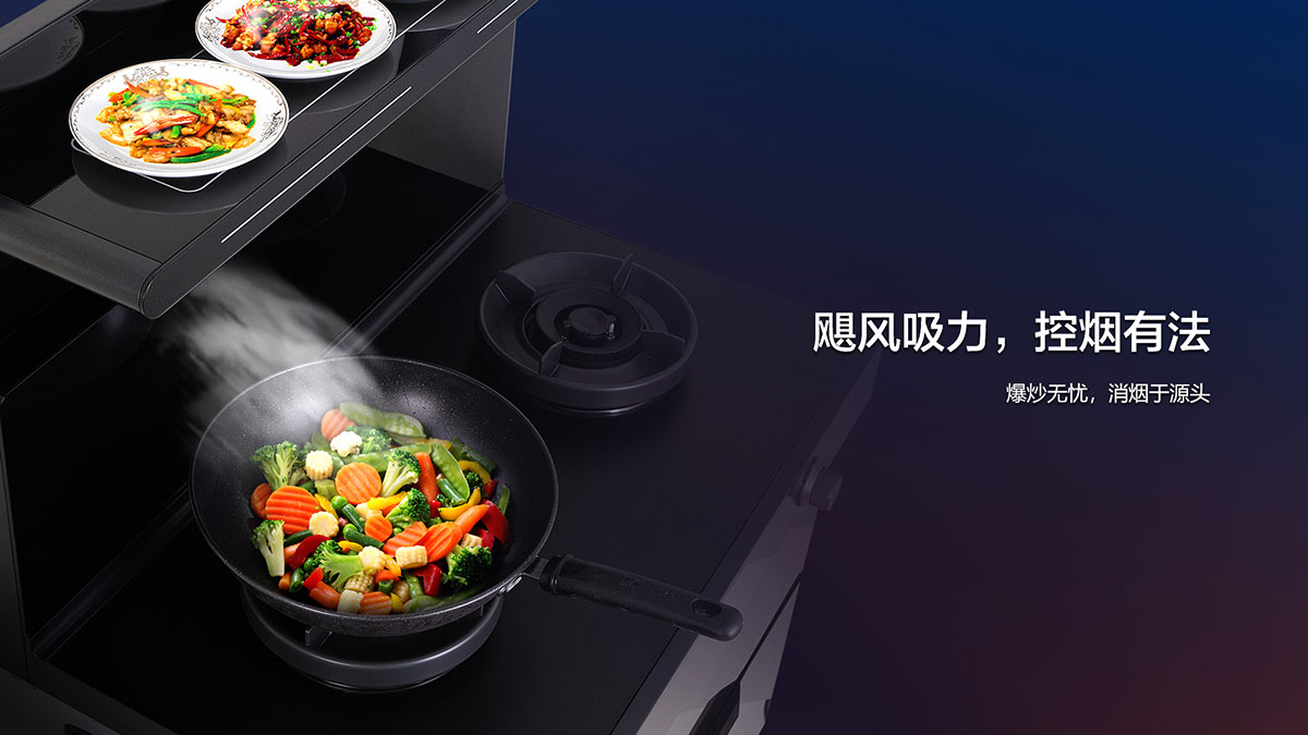 - 創(chuàng)新蘋果機頭,懸浮式隔煙設(shè)計,油煙0擴散