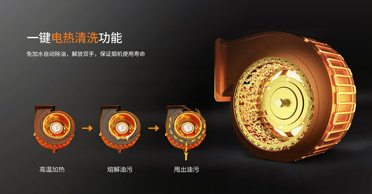 • 一鍵電熱清洗功能,解放雙手,保證煙機(jī)使用壽命