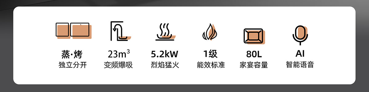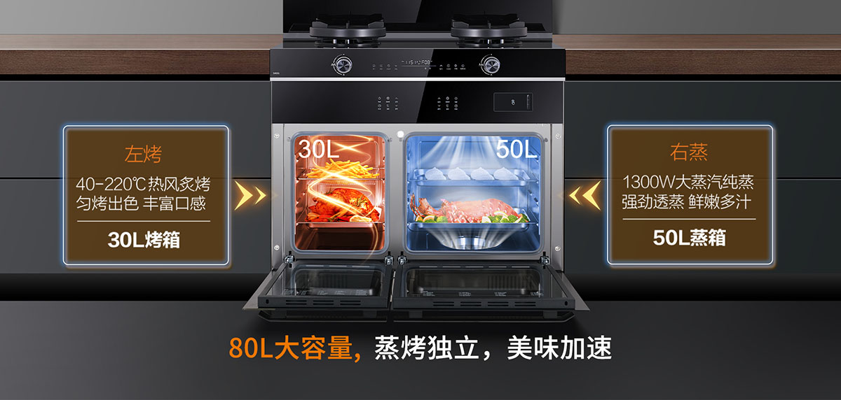 - 80L大容量,蒸烤獨(dú)立,美味加速