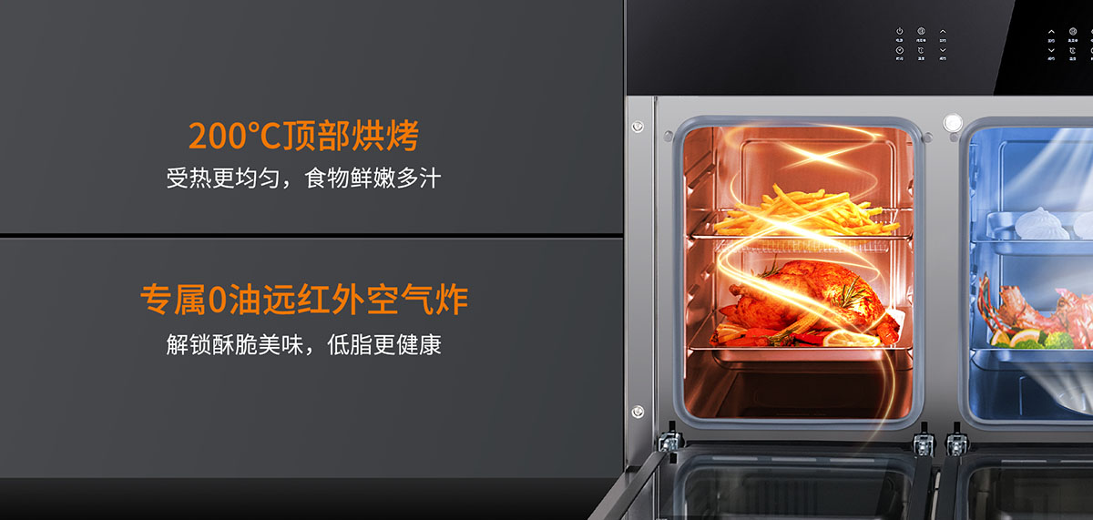 - 200℃頂部烘烤,受熱更均勻,食物鮮嫩多汁