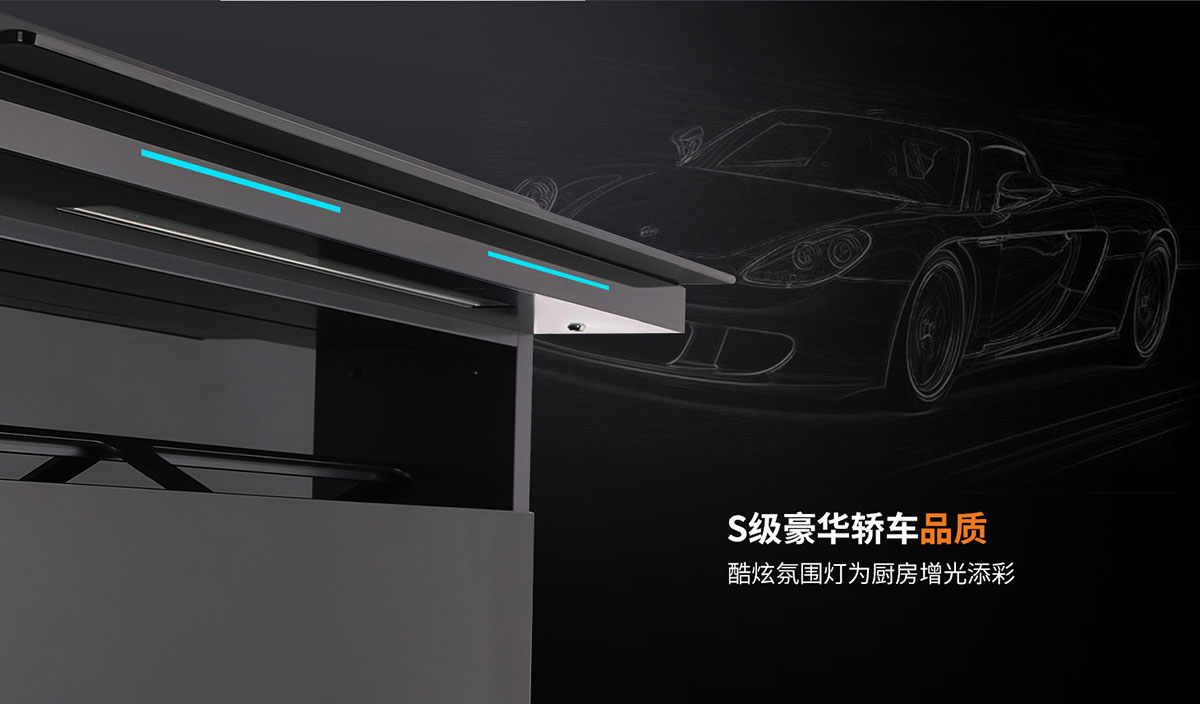 - S級(jí)豪華轎車(chē)品質(zhì),酷炫氛圍燈為廚房增光添彩
