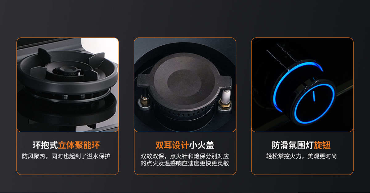 - 環(huán)抱式立體聚能環(huán),防風(fēng)聚熱,同時(shí)也起到了溢水保護(hù)