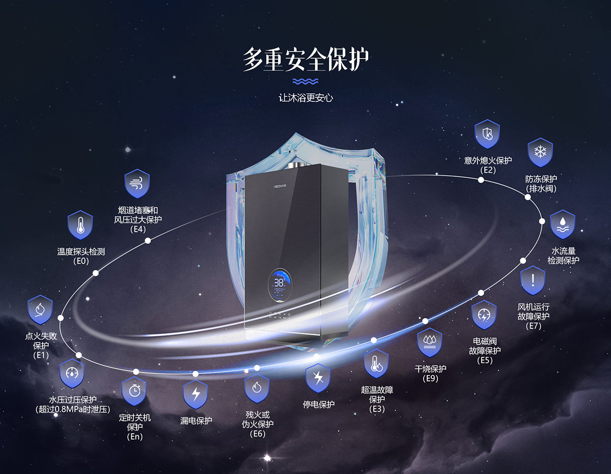 - 多重安全保護,綜合安全性能更強,沐浴更安心