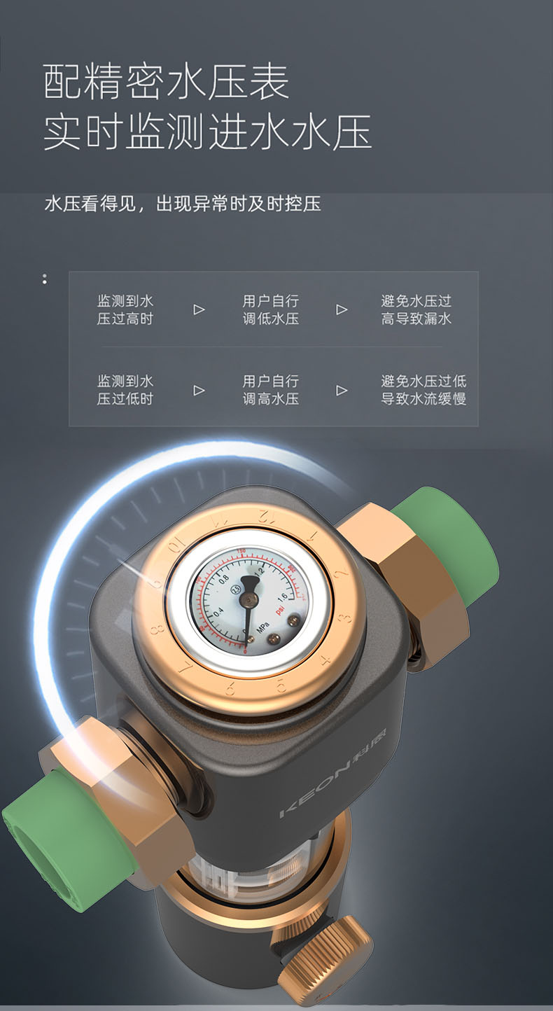 - 配精密水壓表,實時檢測進水水壓