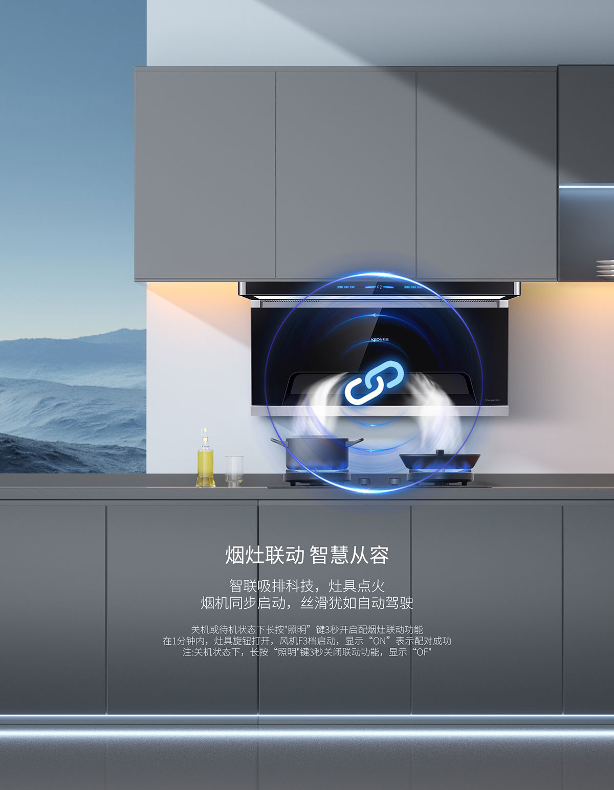 - 風(fēng)隨火啟,煙灶聯(lián)動(dòng),智慧從容,智聯(lián)吸排科技