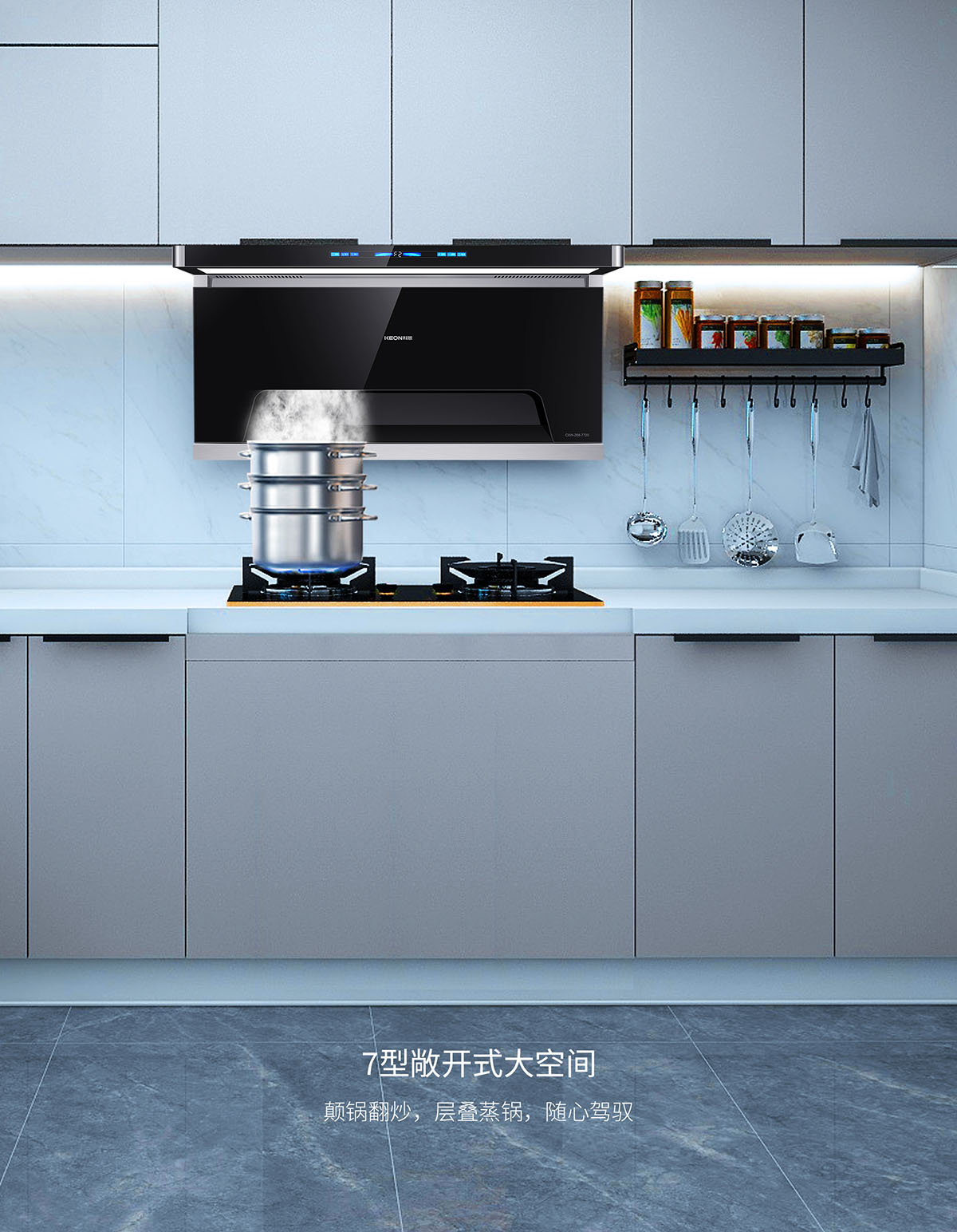 - 105°仰角攏煙設(shè)計(jì),瘦身大空間,翻炒不碰頭