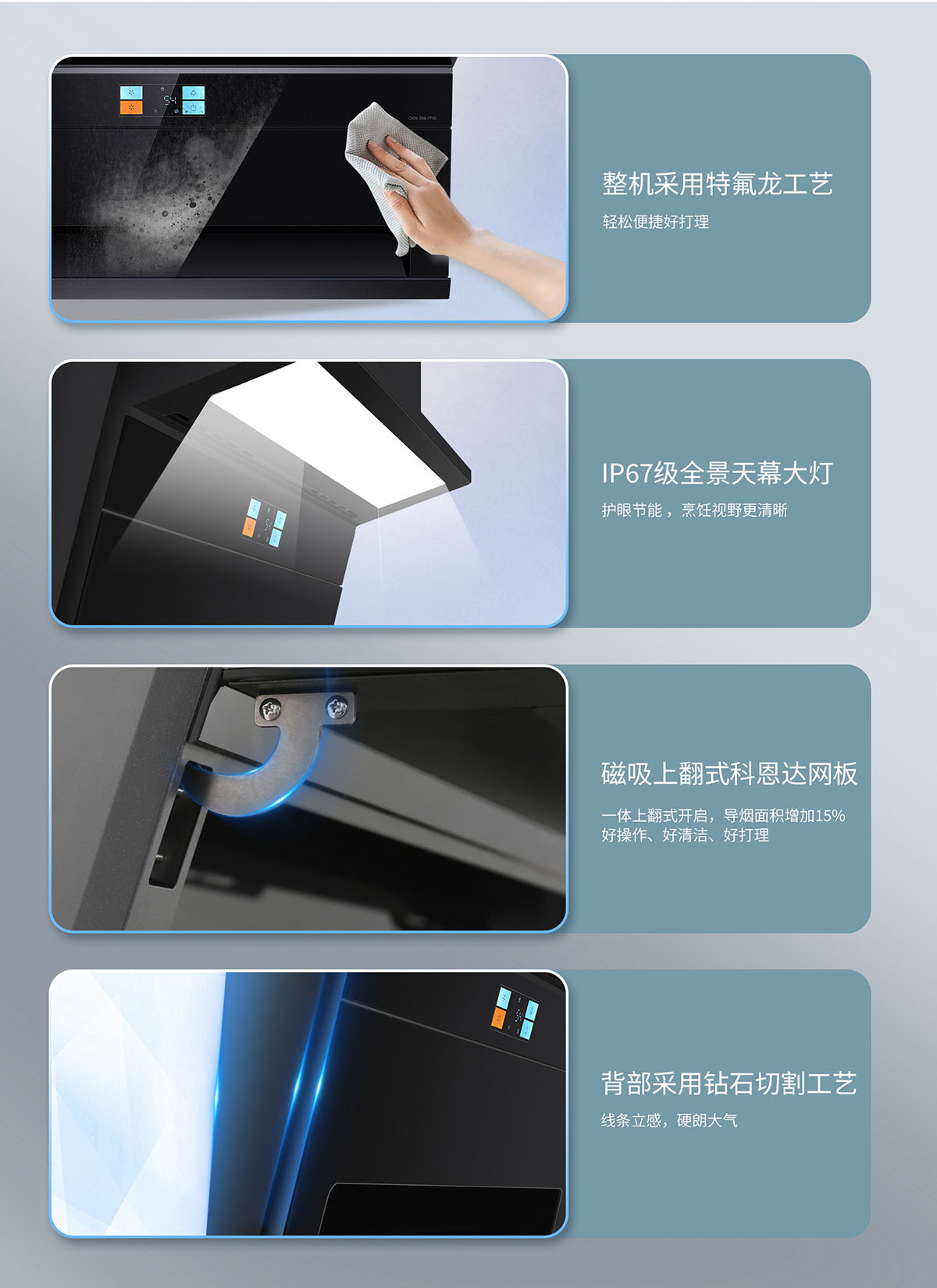 - 磁吸上翻式科恩達導(dǎo)煙板,減震防撞,清潔更便捷