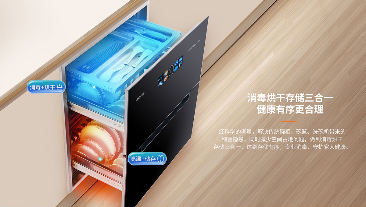 - 內(nèi)三抽專屬抑菌隔層,避免餐具交叉污染