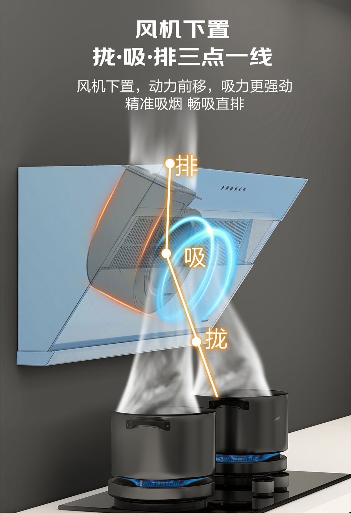 - 攏、吸、排三點(diǎn)一線(xiàn),暢吸直排,高效凈煙