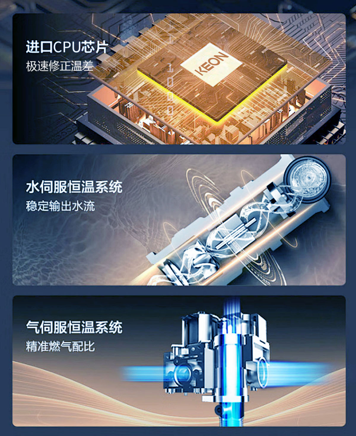 - 極速智能恒溫技術,精確的燃氣比例閥恒溫調(diào)節(jié)系統(tǒng)。