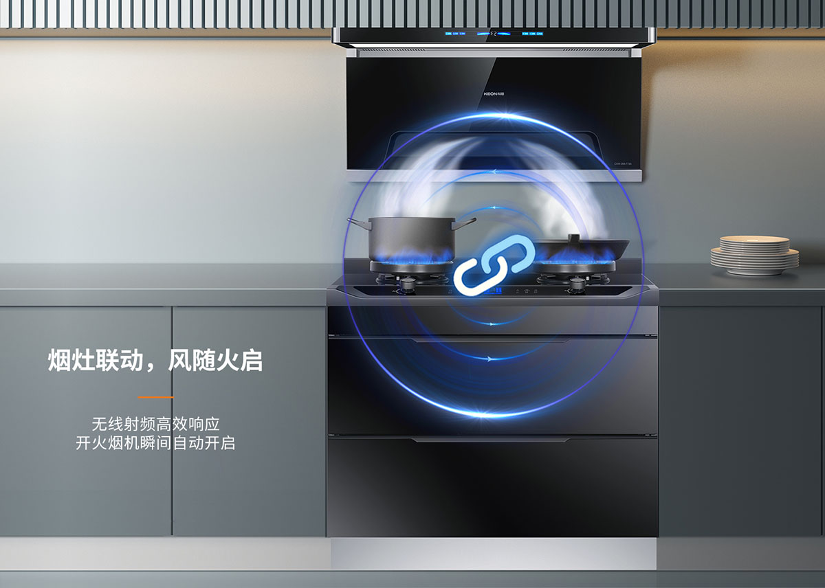 - 煙灶智能聯(lián)動(dòng),風(fēng)隨火啟