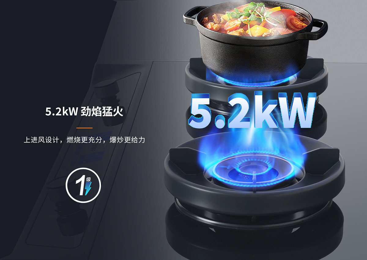 - 5.2Kw藍(lán)焰猛火,爆炒更給力